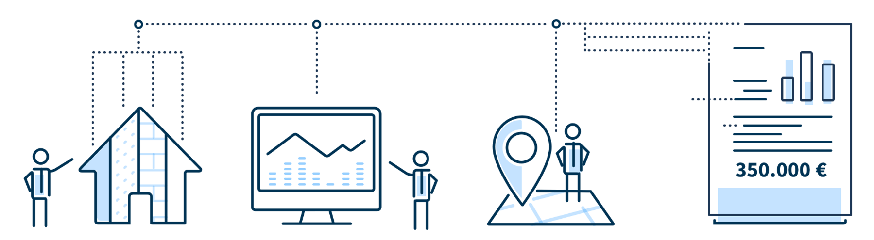 Mit der kostenlosen Immobilienbewertung erfahren Sie als Immobilienverkäufer schnell und präzise, wie viel Ihre Immobilie aktuell wert ist und zu welchem Preis sie sich verkaufen lässt. Um den optimalen Verkaufspreis zu ermitteln, verbinden wir unsere langjährige Erfahrung und Marktkenntnis mit unseren einzigartigen Preisanalysen anhand eines innovativen Bewertungstools.